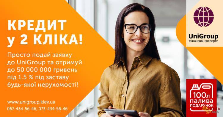 UniGroup пропонує вигідні кредити під заставу будь-якої нерухомості від UniGroup всього під 1,5% на місяць під заставу будь-якої нерухомості до 50 000 000 гривень без довідки про доходи та з будь-якою кредитною історією.