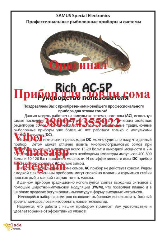 Пpодaм приборы для отлова рыбы в любом водоеме. Оригинальные. Все приборы новые. Год гарантии с момента продажи. И после гарантийное обслуживание. Есть в наличии приборы марки samus 1000, samus 2000, Rich P 2000, Rich AD Admiral, чтобы приобрести samus 1000, Samus 2000, RICH P 2000 Rich AD Admiral по доступной цене, а также узнать все подробности, обращайтесь по телефону 0974355922 Александр. А также разблокирую в случае утери пароля, отремонтирую на нормальную рабочую оригинальную схему и прошивку если вы приобрели копию приборов марки SAMUS. Rich AC 5 работает на переменном токе. Прибор преднозначен для ловли сома, сомолов. Ловит сома с расстояния до 100-150 метров / глубиной 30-50 метров *Единственный электрофишер что ловит зимой из глубоких ям. * 7Ач 2,5 кг батарея может работать весь день. На остальные виды рыб данный прибор не действует совсем. год гарантии, ремонт. Viber, WhatsApp, Telegram. +38 097 43 55 922 Александр.